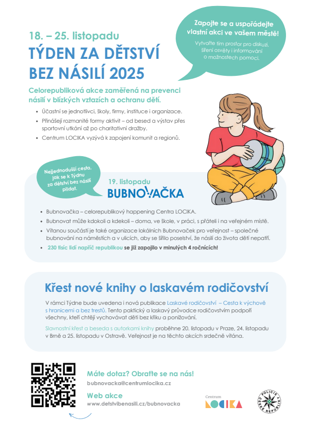 Týden za dětství bez násilí je celorepubliková akce zaměřená na prevenci násilí v blízkých vztazích a ochranu dětí. Každému nabízí možnost aktivně se zapojit uspořádáním vlastní akce, která vytvoří prostor pro diskuzi, šíření osvěty i informování o možnostech pomoci. Do Týdne se mohou zapojit jednotlivci, školy, firmy, instituce i organizace a přinést rozmanité formy aktivit – […]